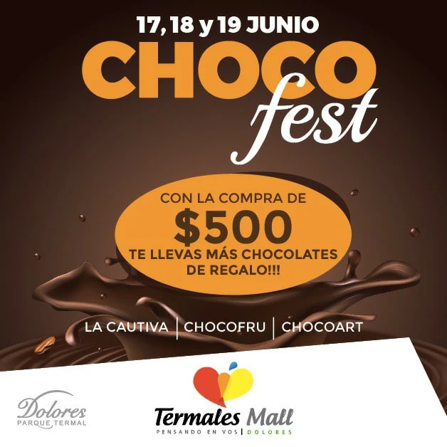 Comenzará el viernes 17 hasta domingo 19, a las 19 horas, en el Parque Termal de Dolores, Termales Mall, ubicado en Avenida Belgrano y RP Nº 63. La fiesta contará con la elaboración en vivo de chocolates, degustación ChocoWine, música, juegos y sorteos. La entrada debe abonarse.