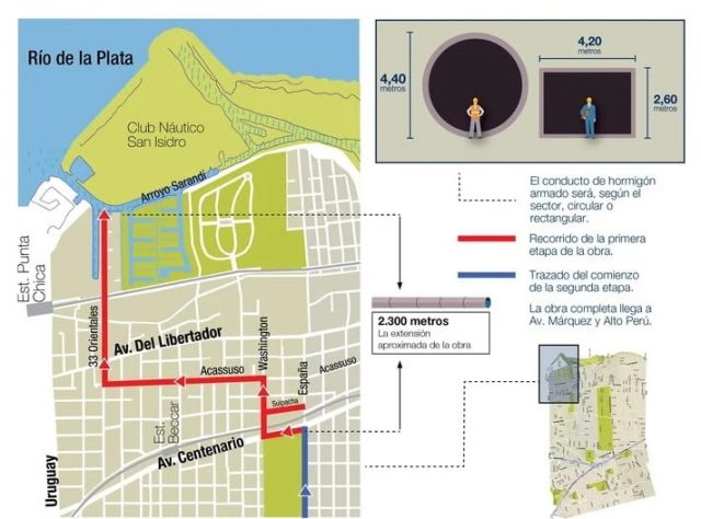 Además de aliviar todo el sistema de desagües pluviales existentes y evitar anegamientos, esta obra eliminará los posibles anegamientos en los cuatro túneles del ferrocarril Mitre, y en el futuro paso bajo nivel de que se construirá en la calle Almirante Brown.