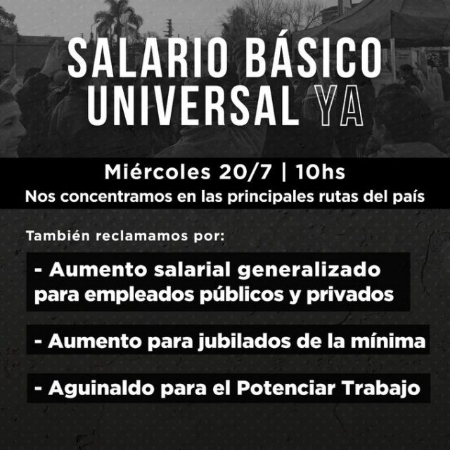 Organizaciones y movimientos sociales volverán a las rutas mañana para reclamar al gobierno nacional la creación de un Salario Básico Universal y aguinaldo para los beneficiarios del Potenciar Trabajo.