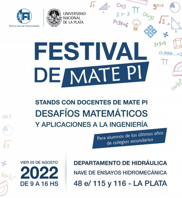 Una nueva edición del “Festival Mate Pi”, orientado a incentivar a alumnos y alumnas del último año de escuelas secundarias en el estudio de Ingeniería y para derribar el mito de que la matemática es una materia difícil o poco entretenida, se realizará el próximo viernes en la Facultad de Ingeniería de la Universidad Nacional de La Plata (UNLP).