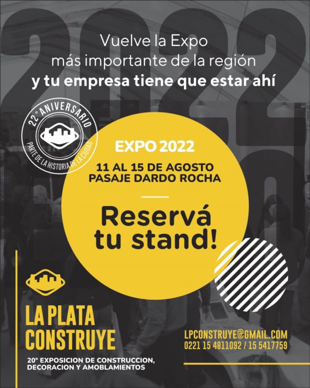 Llega a la capital de la provincia de Buenos Aires la 20ª edición de “La Plata Construye”, la exposición de construcción, decoración y amoblamientos que se realizará del 11 al 15 de agosto en el Pasaje Dardo Rocha. Se encuentran abiertas las reservas para stands empresariales.