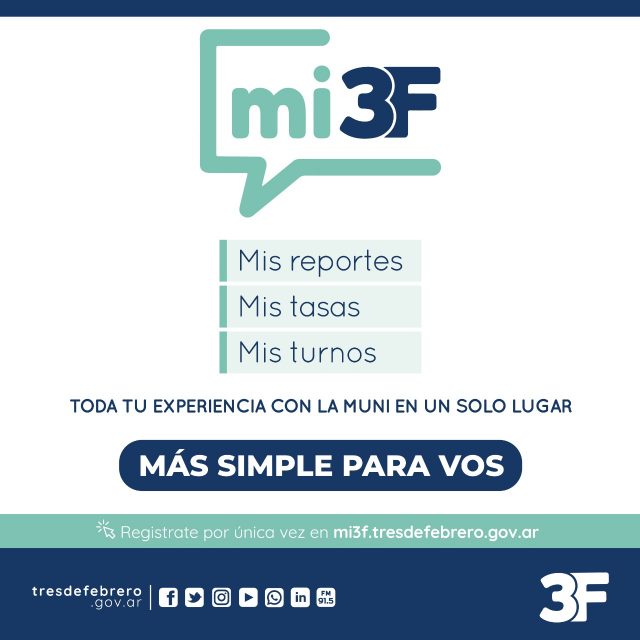El Municipio de Tres de Febrero lanzó Mi 3F, una nueva plataforma interactiva para que los vecinos puedan llevar adelante todas sus gestiones municipales desde un solo sitio. Para utilizarlo, se deben registrar por única vez en mi3f.tresdefebrero.gov.ar.