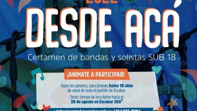 Con la coordinación de la Dirección de Juventud, el municipio de Escobar lanzó el concurso “Desde Acá 2022”, que abarca todos los géneros musicales y está destinado a bandas y solistas del distrito de hasta 18 años inclusive.