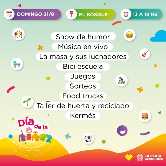 Según se informó desde la Comuna, la jornada destinada a la infancia se extenderá hasta las 18 horas en el emblemático espacio platense y contará con espectáculos musicales en vivo, una kermés y talleres de diversas disciplinas.
