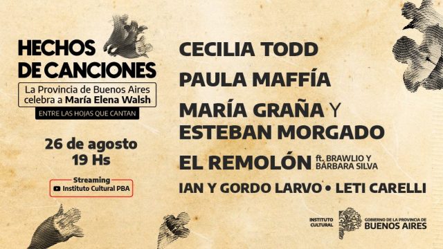 “Entre las hojas que cantan” se desarrollará el viernes 26 de agosto a las 19 horas. Los artistas que formarán parte del evento son Cecilia Todd, Paula Maffía, María Graña y Esteban Morgado, entre otros. El concierto se transmitirá en vivo por el canal de Youtube del Instituto Cultural de la Provincia de Buenos Aires.