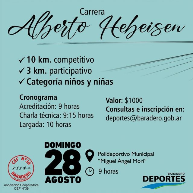 El domingo 28 se realizará en el Polideportivo Municipal la carrera competitiva y participativa para todas las edades ‘Alberto Hebeisen’, en homenaje al profesor que trabajó incansablemente por el atletismo de Baradero.