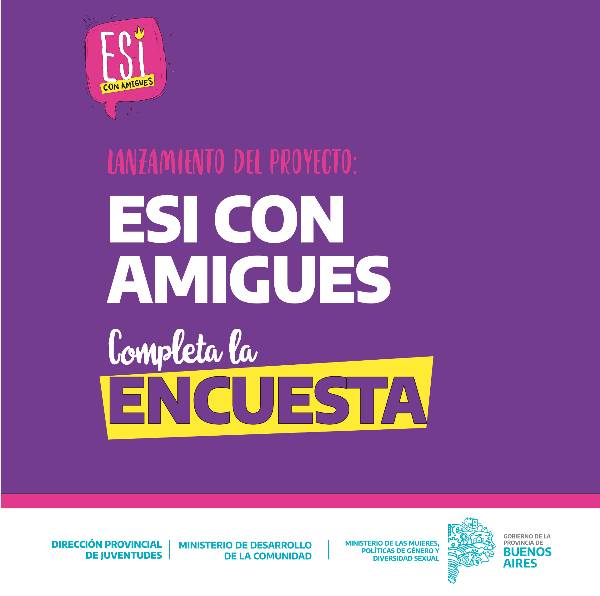 En el marco de la semana de la ESI en la provincia de Buenos Aires, el ministerio de Mujeres, Políticas de Género y Diversidad Sexual bonaerense, en articulación con la dirección de Juventudes del ministerio de Desarrollo de la Comunidad, presentó la iniciativa “ESI con Amigues”, que se propone la construcción de un dispositivo de educación sexual integral en espacios juveniles comunitarios, centros deportivos y organizaciones.