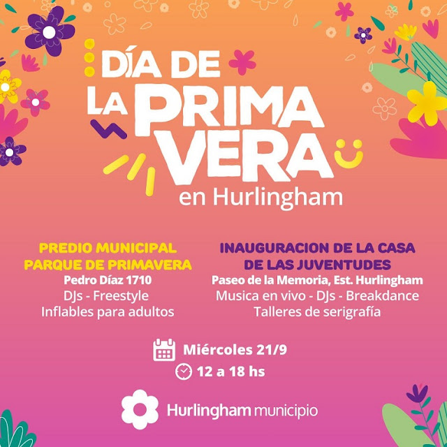 Hurlingham recibirá la primavera con dos grandes actividades. Desde el mediodía, funcionará el “Parque de Primavera” en el predio municipal (Av. Pedro Díaz 1710) y, a su vez, se inaugurará la Casa de las Juventudes a metros de la estación del Ferrocarril San Martín.