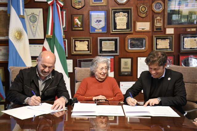 El gobernador bonaerense, Axel Kicillof, firmó un convenio para la creación del Espacio de Cultura Popular y Archivo de las Madres en el partido de Ensenada, junto a la titular de la asociación Madres de Plaza de Mayo, Hebe de Bonafini; el intendente local, Mario Secco; la presidenta del Instituto Cultural, Florencia Saintout; y la subsecretaria de Políticas Culturales, Victoria Onetto.