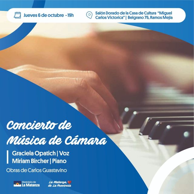 El evento, con entrada libre y gratuita, es organizado por la Secretaría de Cultura y Educación de La Matanza, en el marco de la agenda cultural que lleva adelante el Municipio. Serán parte del concierto la cantante lírica Graciela Opatich y la pianista Miriam Bircher, que interpretarán una selección de obras del compositor argentino Carlos Guastavino, que incluirá algunas de sus composiciones más conocidas como “Flores Argentinas”, que incluye 12 canciones con poesía de León Banarós; “En los surcos del Amor”, del ciclo Cuatro Canciones Argentinas; “Se equivocó la paloma”, con poesía de Rafael Alberti, y “La Rosa y el Sauce” con poesía de Francisco Silva.