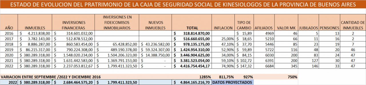 Aseguró además entre las líneas de inversión “se tomó una dirección hacia los instrumentos sólidos, frente a la imprevisión absoluta de las opciones gubernamentales en materia de adquisición de Deuda Pública”. Estos logros superaron lo que imaginábamos al hacernos cargo de La Caja, pero que sin duda tienen que ver con el esfuerzo que pusimos, los conocimientos técnicos que procuramos, y la imaginación de todo un equipo al servicio de los colegas kinesiólogos.
