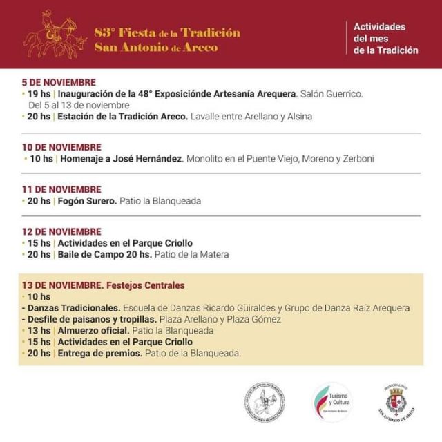 Llega a San Antonio de Areco la Fiesta de la Tradición 2022, que se realizará los días sábado 12 y domingo 13 de noviembre.