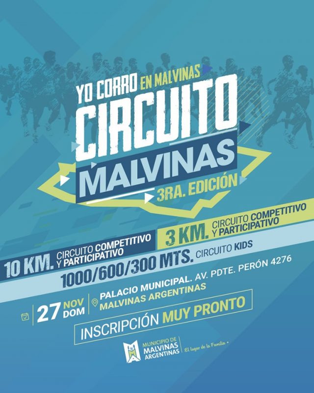 El próximo domingo 27 de noviembre se llevará adelante la tercera edición de “Circuito Malvinas” una maratón para correr en familia y compartir un día de actividad física en Malvinas Argentinas.