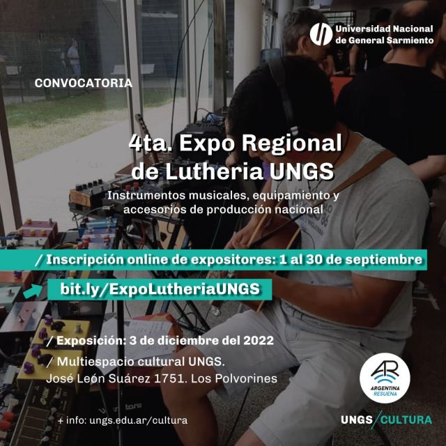 Este sábado 3 de diciembre, a partir de las 11 horas, se realizará la 4º Expo Regional Luthería UNGS (Universidad Nacional General Sarmiento), con la participación de más de 30 luthiers que exhibirán sus instrumentos, equipamientos y accesorios de producción nacional.