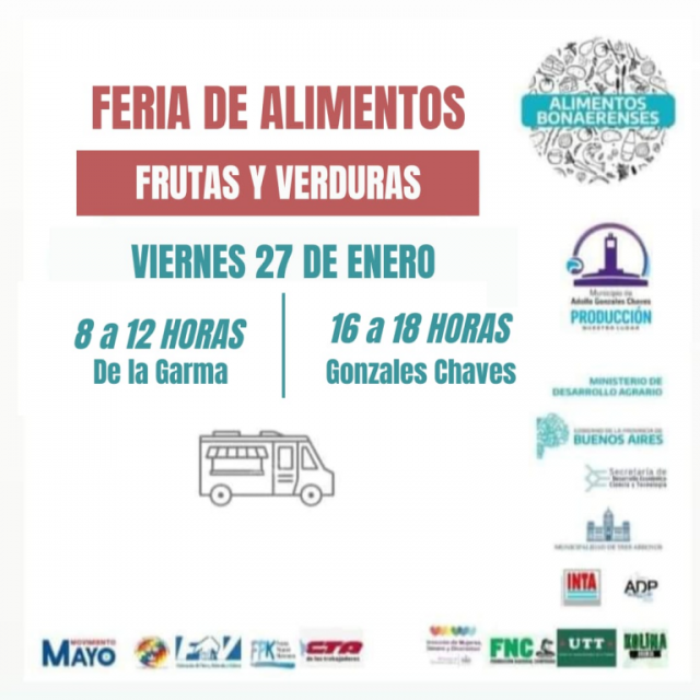 La Dirección de Producción, Ciencia y Tecnología del municipio informó que el próximo viernes 27 de enero el camión de Alimentos Bonaerenses (con frutas y verduras) visitará Gonzales Chaves.