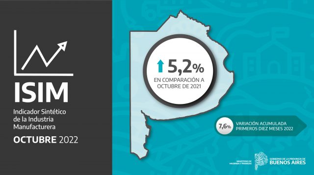 El funcionario agregó que durante octubre de 2022, la industria bonaerense “creció 5,2% respecto a igual mes del año anterior” y subrayó que “se contabilizaron 20 meses de incremento interanual ininterrumpido”. El indicador superó en “más de 7 puntos porcentuales el desempeño industrial de 2019 y fue el mejor octubre desde 2015.