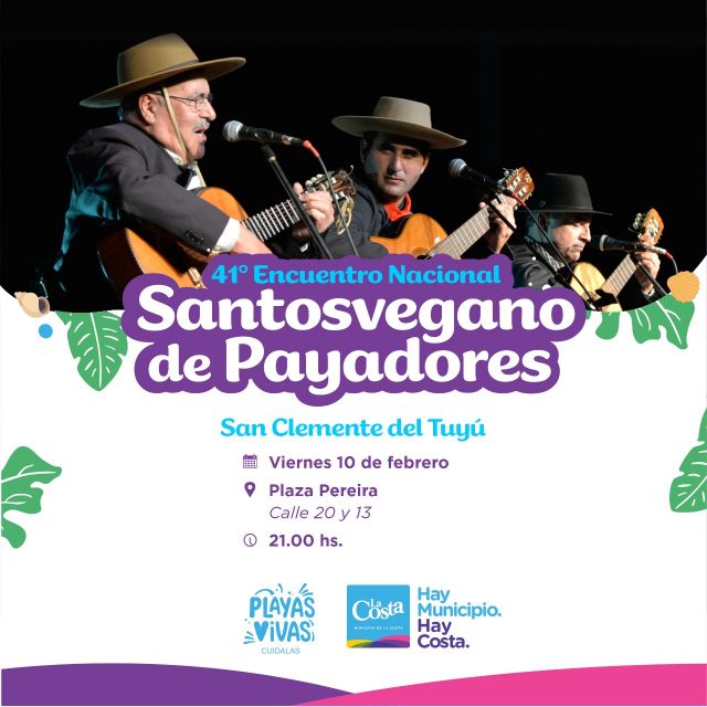 El próximo viernes 10 de febrero se llevará a cabo en San Clemente del Tuyú  la 41ª edición del Encuentro Santosvegano de Payadores, en Plaza Pereira de esa localidad balnearia.