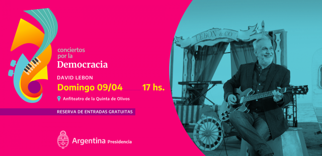 Este domingo 9 de abril a las 17 horas, David Lebón será quien brinde un recital en el marco del Ciclo de Conciertos por la Democracia que se realiza de manera gratuita como parte de las celebraciones por los 40 años de democracia.