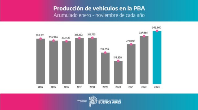 Durante enero y noviembre de 2023, las automotrices asentadas en la provincia de Buenos Aires lograron su mejor performance en la producción de vehículos desde 2013 superando las 362.000.