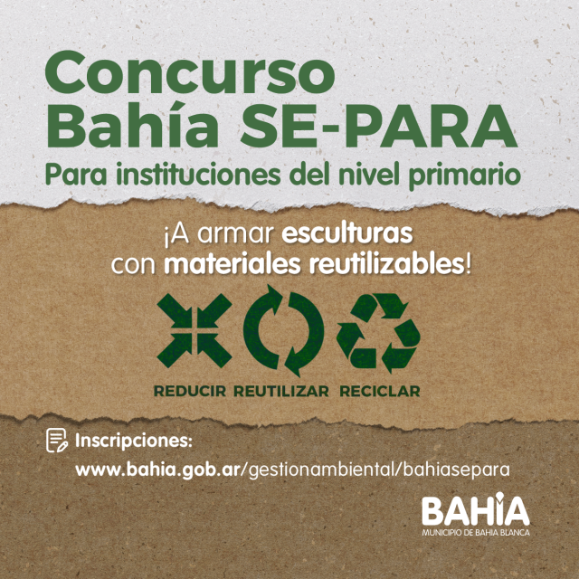Bahía SE-PARA es una iniciativa impulsada por la Municipalidad de Bahía Blanca para concientizar a niñas y niños en la reducción y clasificación de los residuos sólidos urbanos. Se trata de un concurso abierto a establecimientos educativos de nivel primario, que propone la elaboración de una escultura relacionada con temas ambientales a partir de la reutilización de materiales reciclables.